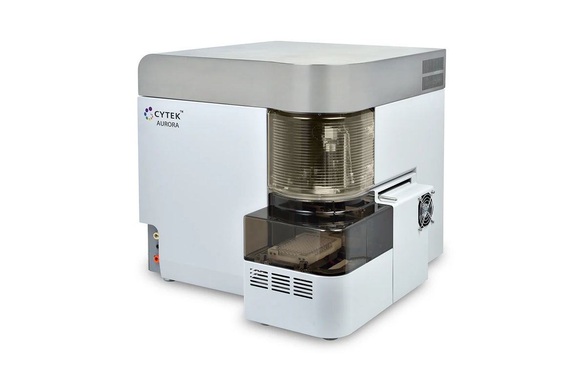 Spectral flow cytometry offers unique optical collection and analytical capabilities enabling the use of a wide range of fluorochrome combinations without reconfiguring the system for each application, resulting in exceptional sensitivity with simple and intuitive operations. Full spectrum signatures are generated for each fluorochrome bound to cellular markers that are used to identify different cell types. Different signatures present in a multicolor sample are then unmixed to allow the use of fluorochromes with close emission peaks in the same sample. This expansion in fluorochrome options and panel size potential, along with the vacuum-powered fluidics system, makes the Cytek® Aurora spectral flow cytometry particularly suitable for studies where unique biomarker signatures are sought or sample availability is limited.