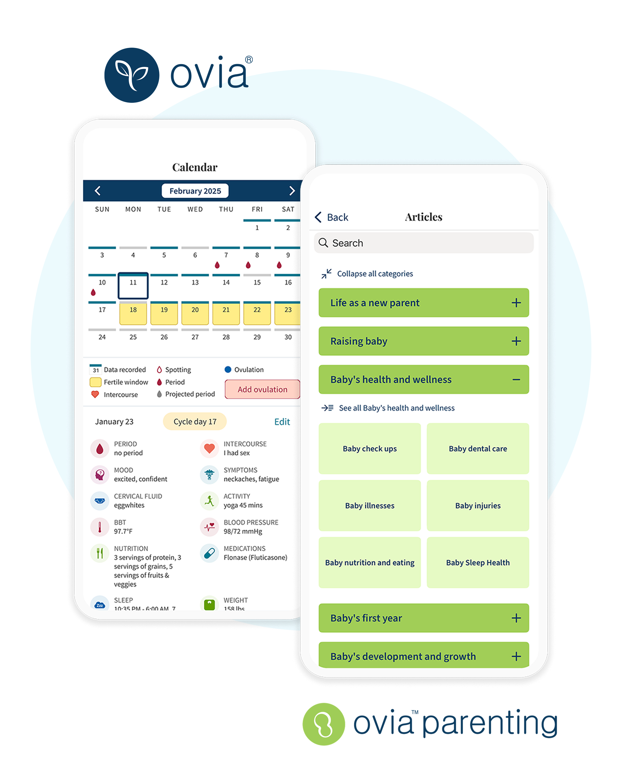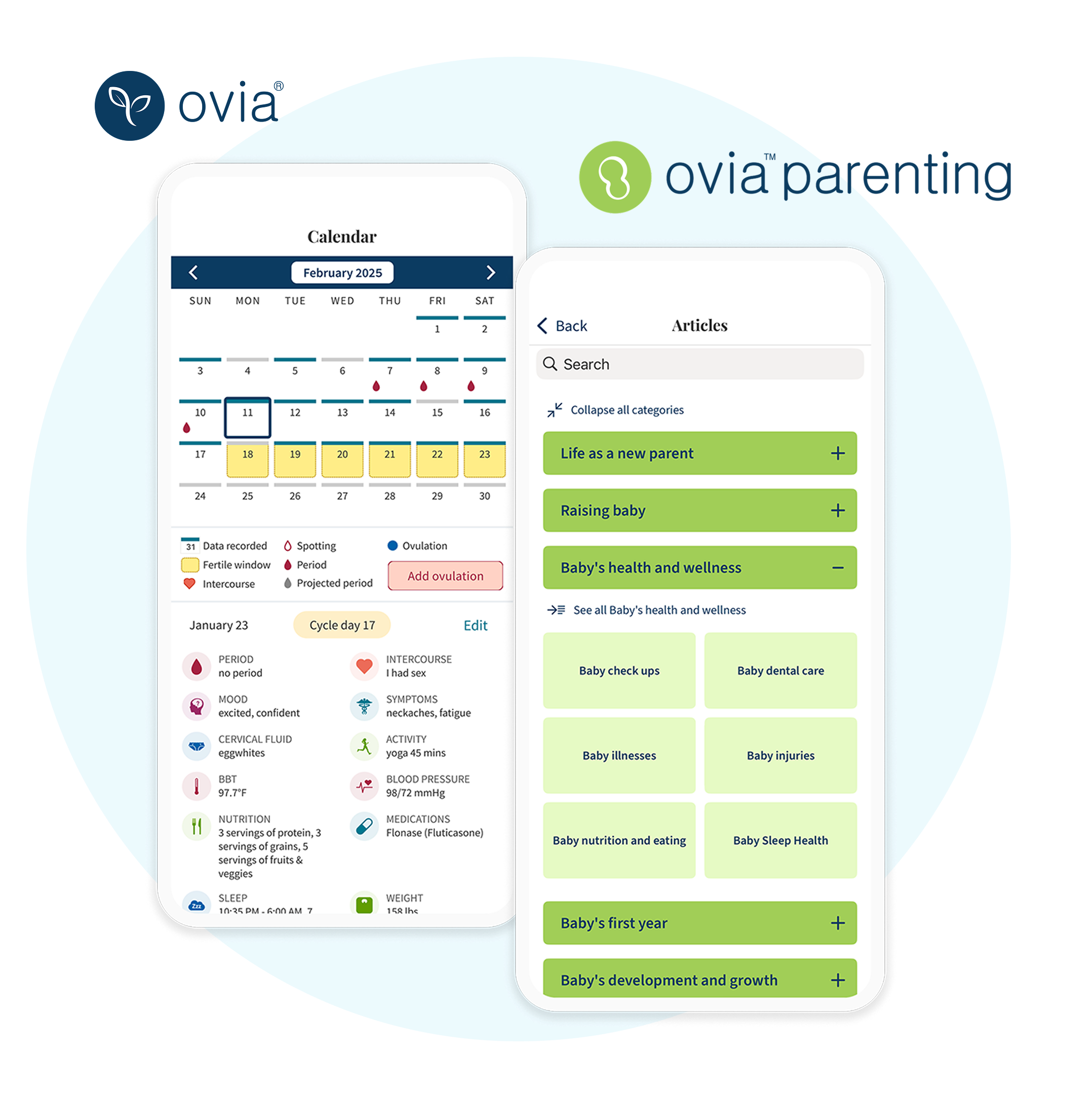 The Ovia® app offers complete women's health support to help you understand your health, identify moods and symptoms, and gain insights throughout your life. From preventive and general health, to trying to conceive, pregnancy and postpartum care, to perimenopause and menopause, the Ovia® app offers a personalized experience for your unique goals through tailored insights, tips, and content.