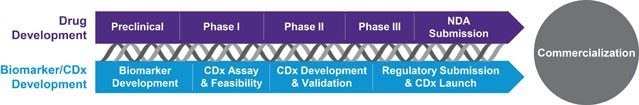 La medicina de precisión exige la estratificación de los pacientes: identificar a los pacientes objetivo que tienen más probabilidades de beneficiarse de la terapia; los diagnósticos de compañía también permiten reducir el tiempo de desarrollo y los costos de desarrollo de medicamentos, pueden resultar en un reembolso más favorable y pueden ilustrar la efectividad comparativa.