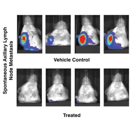 • Células implantadas en la almohadilla de grasa mamaria que hacen metástasis a los ganglios linfáticos y los pulmones