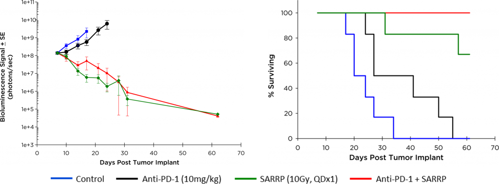 • El tratamiento con SARRP y anticuerpos anti-PD-1 en combinación aumentó la supervivencia general en comparación con cada tratamiento con agente único