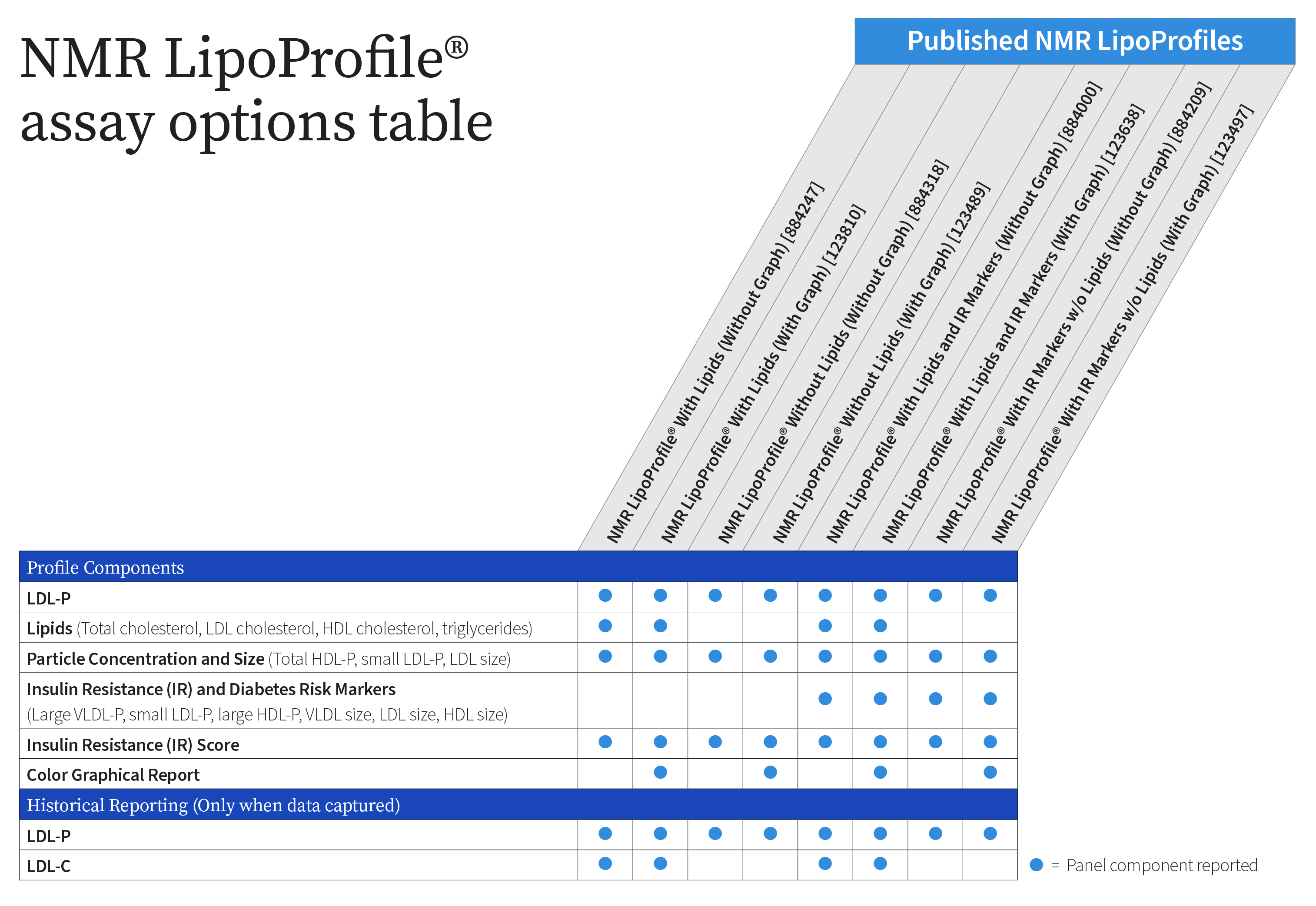 For optimal printing, select this link to print the NMR LipoProfile Assay Options Table.